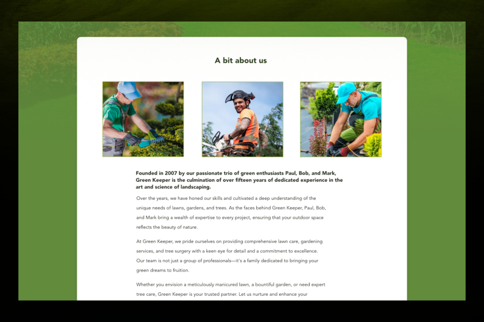 Brief: UK based Green Keeper lawn care company, expanding its services to commercial businesses including Golf courses, sports pitches and parks, as well as tree and gardening services.