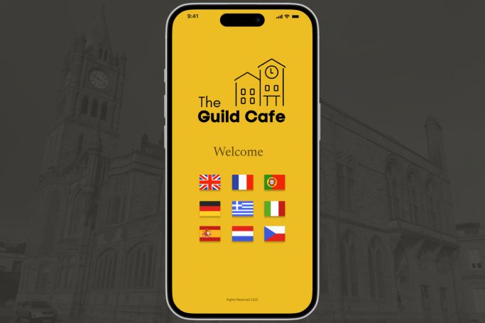 Brief: A cafe bistro set in the heart of Derry town center's historic Guildhall in Northern Ireland, catering to both locals and tourists.