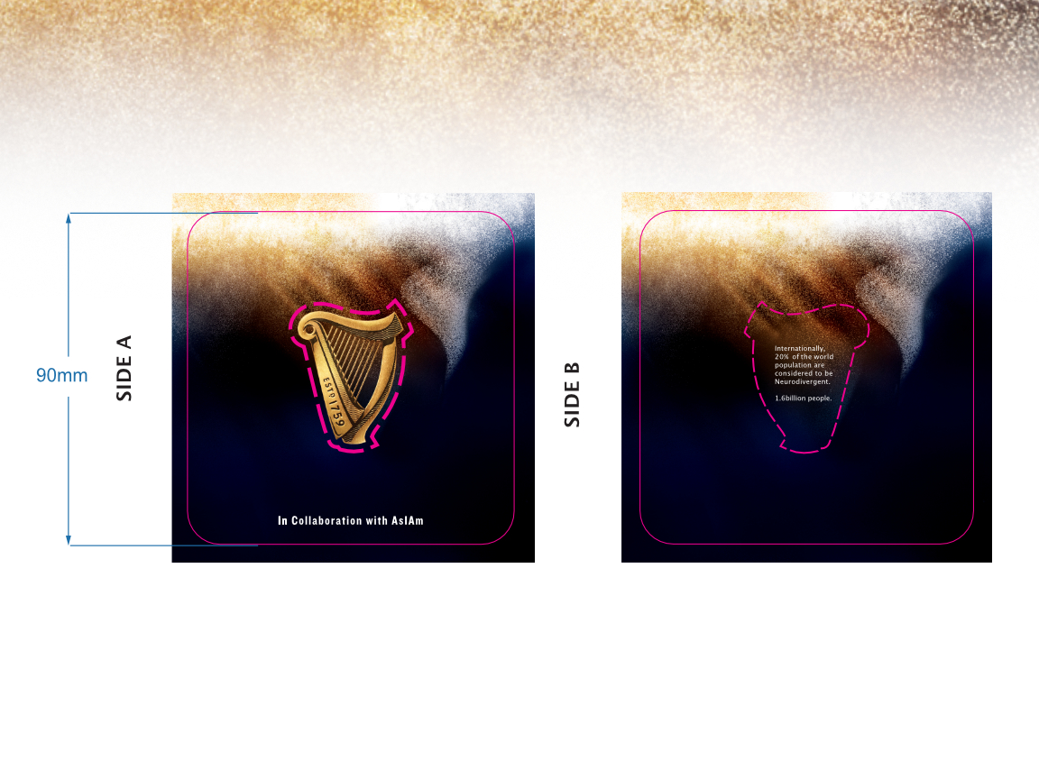 " A collaborative concept for a range of new beer mat designs with the Internationally renowned Irish brand, bringing new life to the humble beer mat featuring the iconic Guinness name and logo Harp.