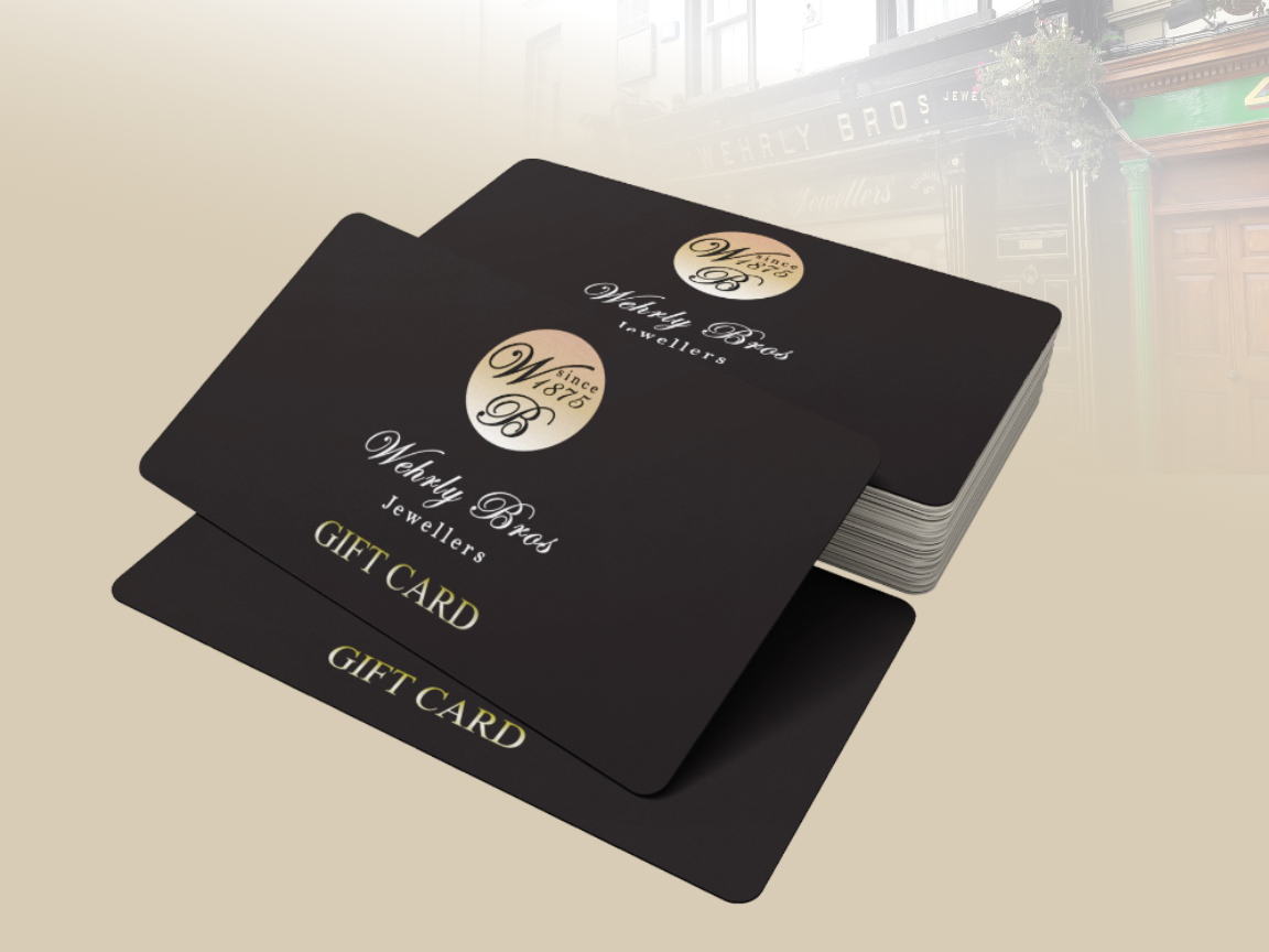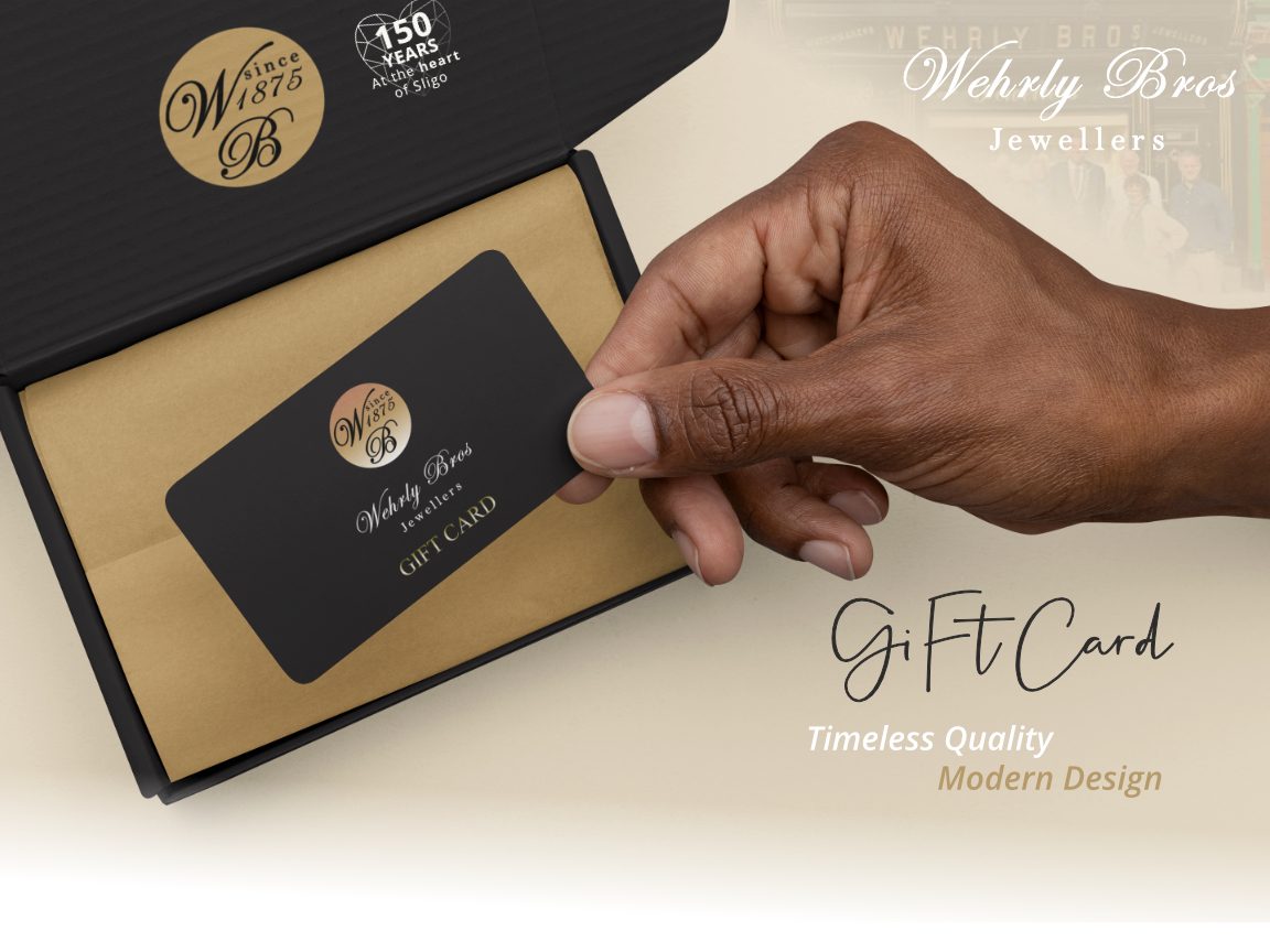 Brief: While working at ADC PlastiCard, Werhly Jewellers, a family run Sligo based business celebrating an incredible 150 years in business, wanted to commemorate with a change to their long running gift card design as well as a special commorative gift box to go with.