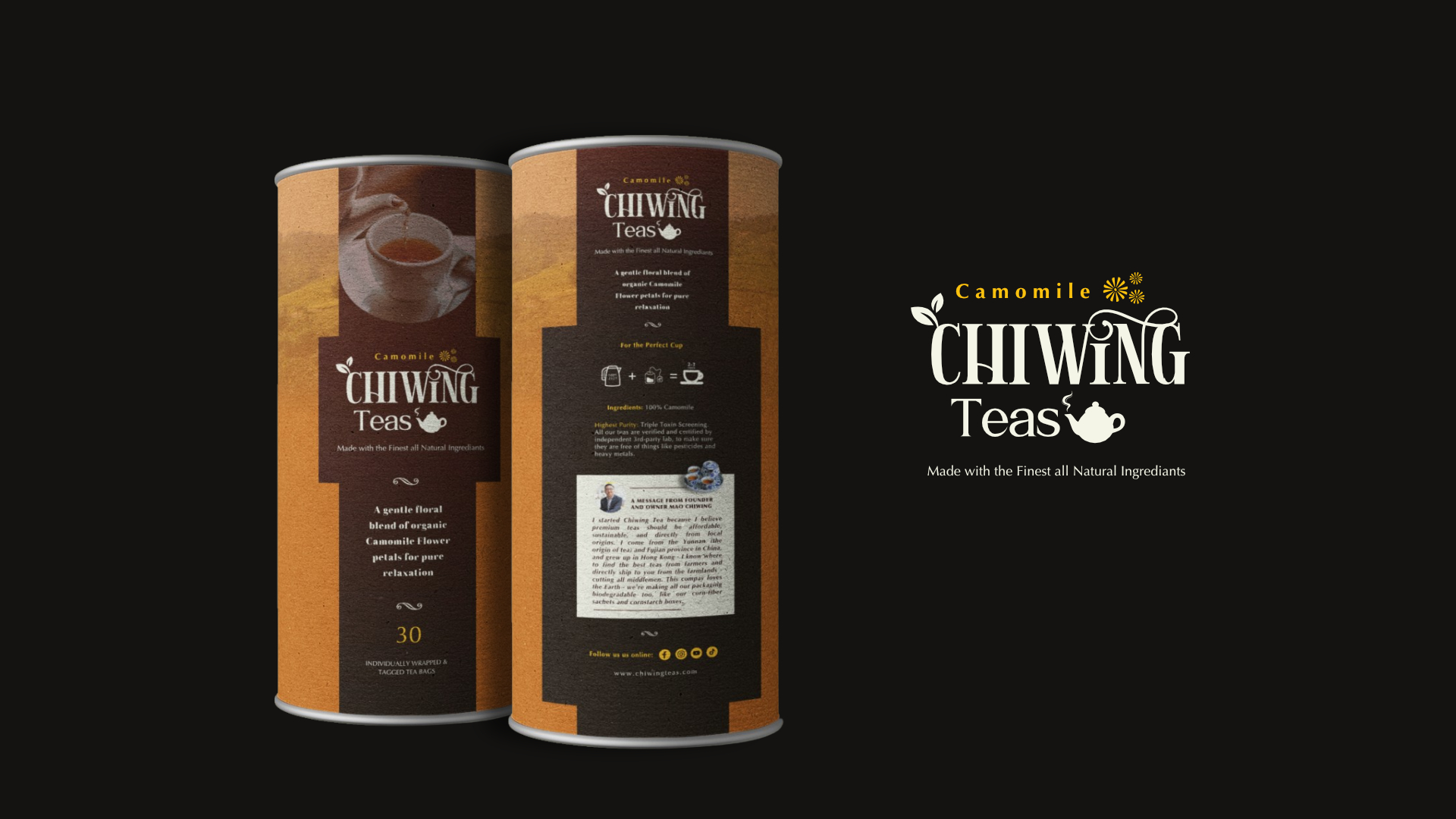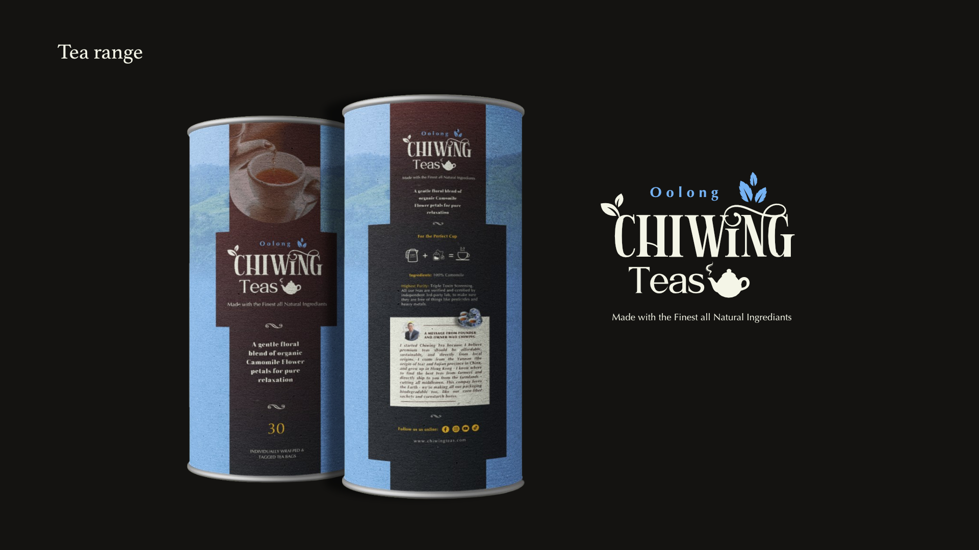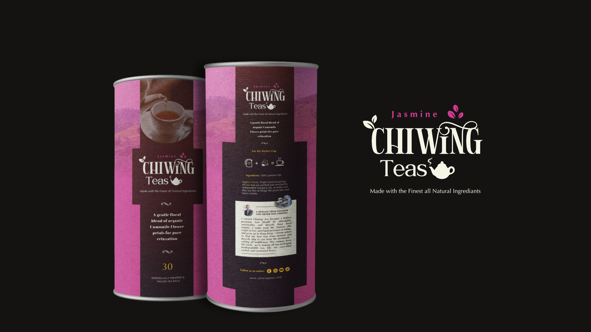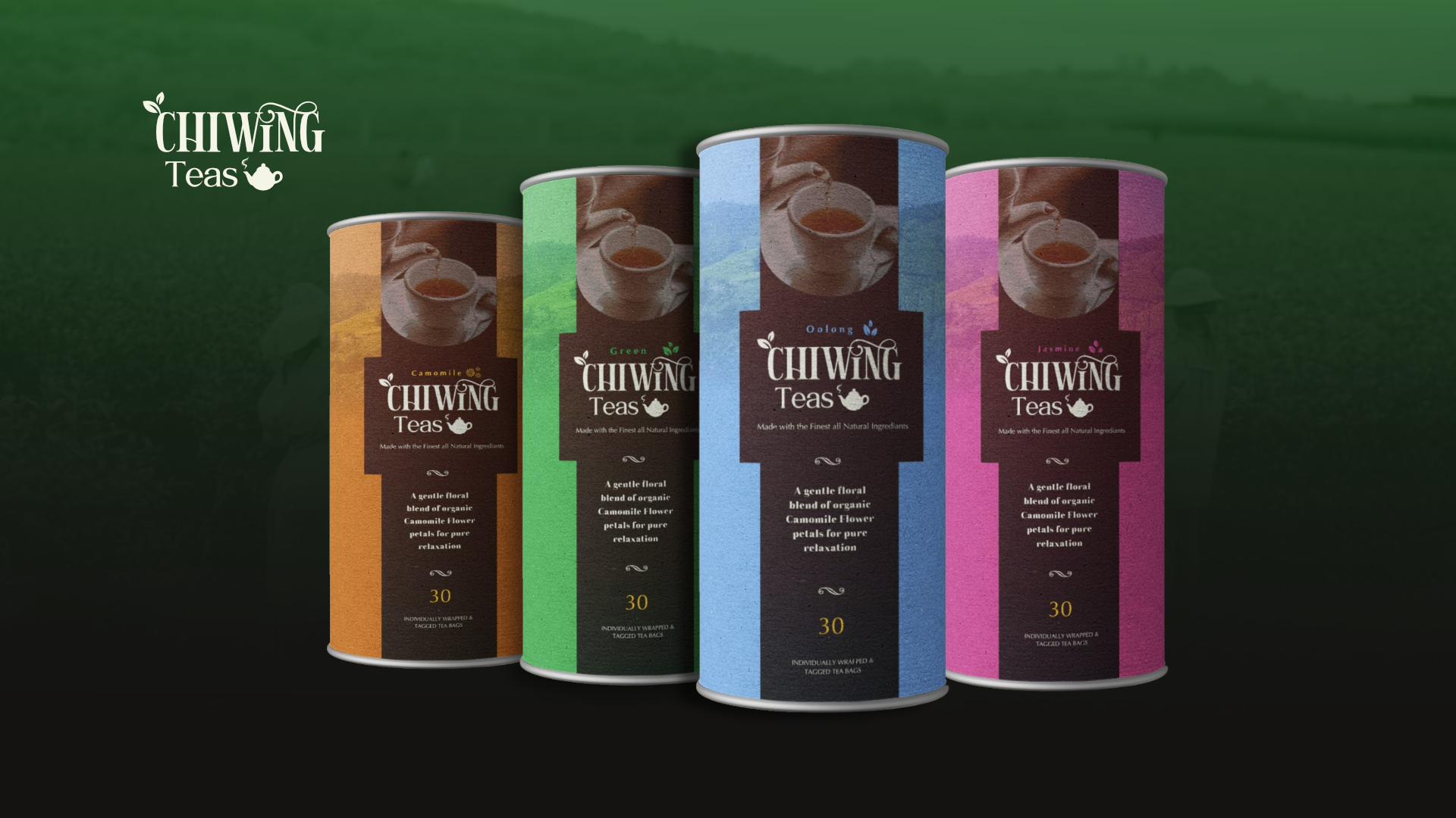 Brief: A new tea bag brand for international market, with Chinese teas and floral teas, called 'Chiwing Tea'.