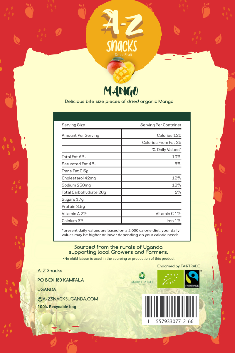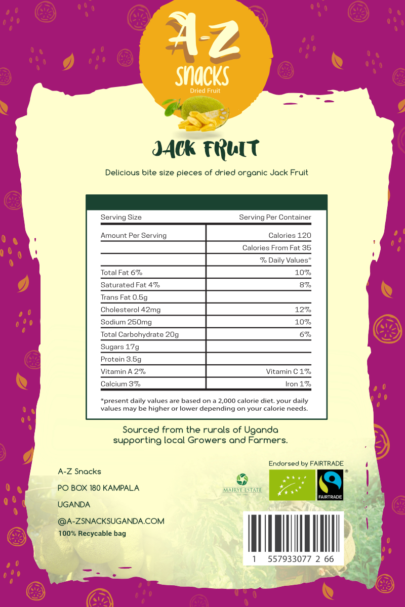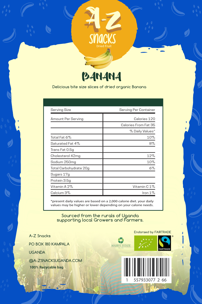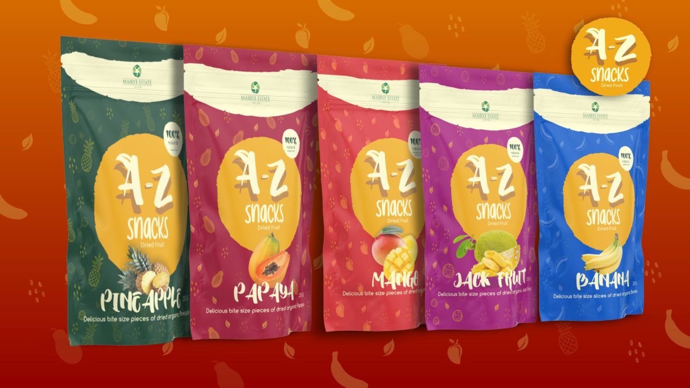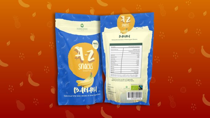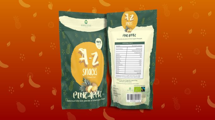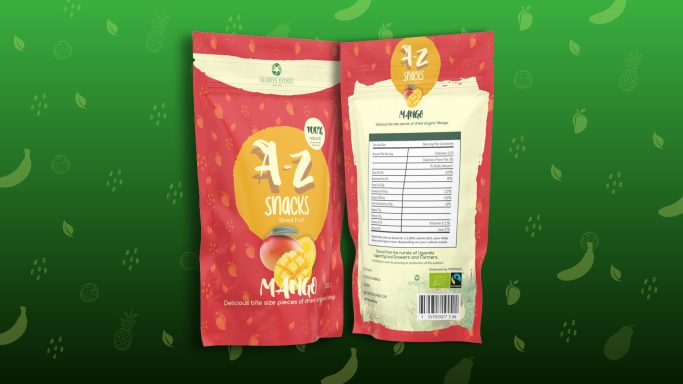 Brief: A-Z Snacks, a newly established dried fruit snack brand, featuring produce from Fair Trade Farmers and growers in Uganda was needing a colourfully distinct packaging design.