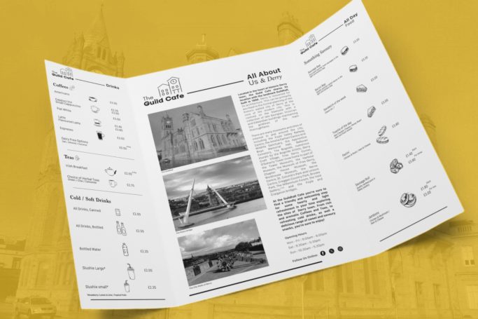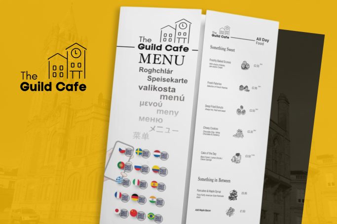 The proposed solution offers an online PDF version of each language via QR code on the cover of the original English menu, to also be used on posters and signs at tourist locations around Derry.